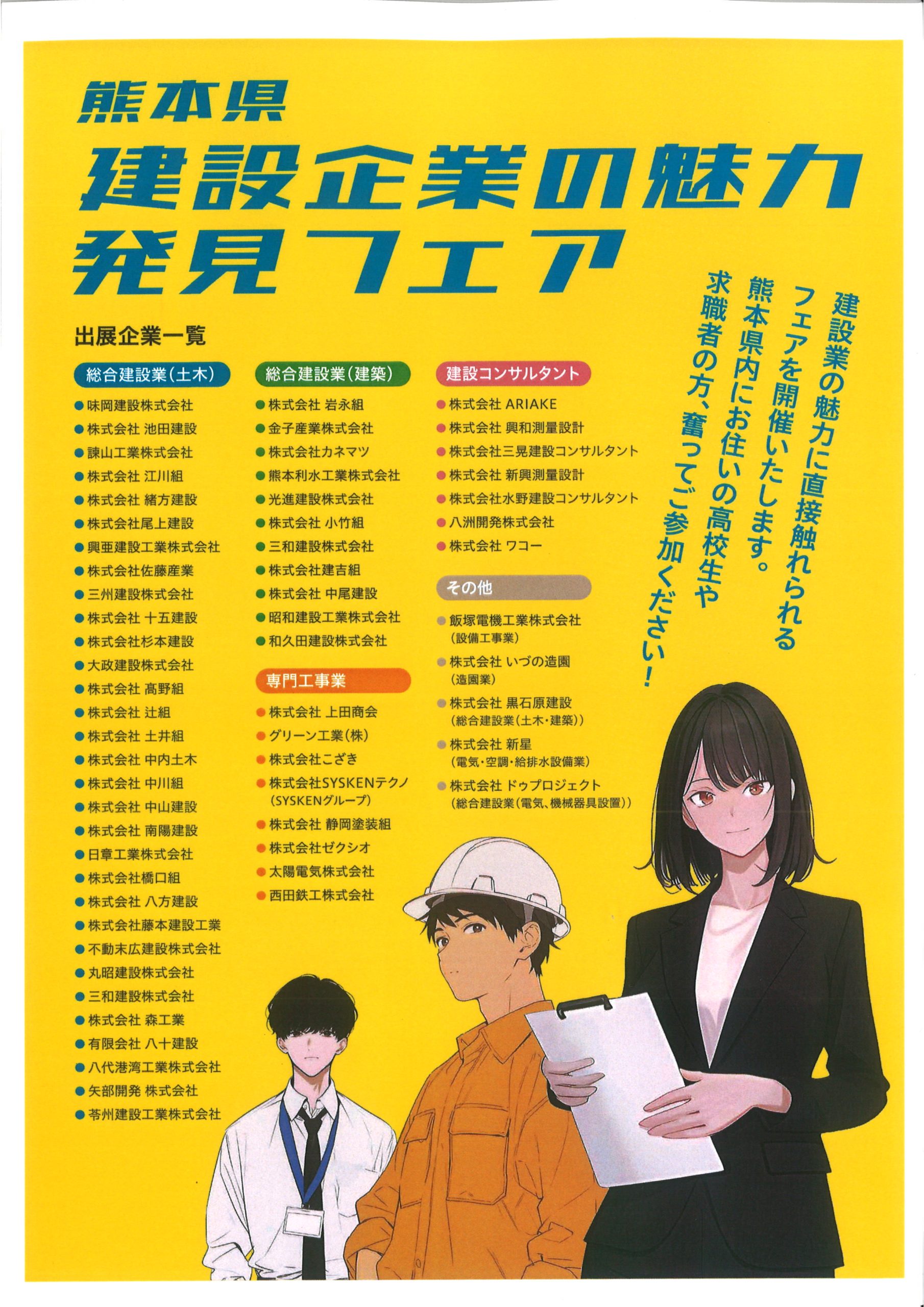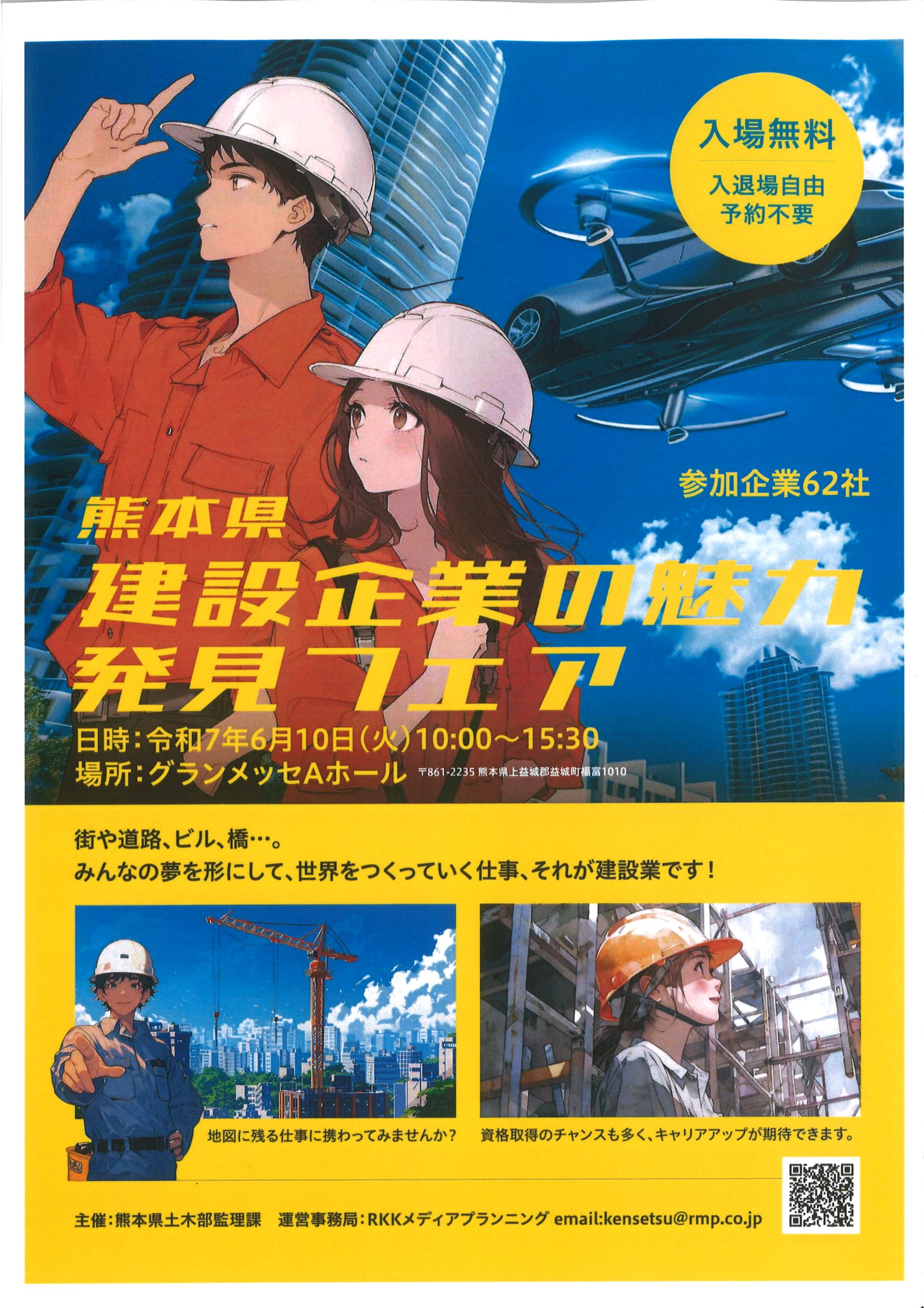 令和7年(2025年)6月10日(火)10:00~ グランメッセ熊本で行われる「令和7年度 熊本県建設企業の魅力発見フェア」に出展します。