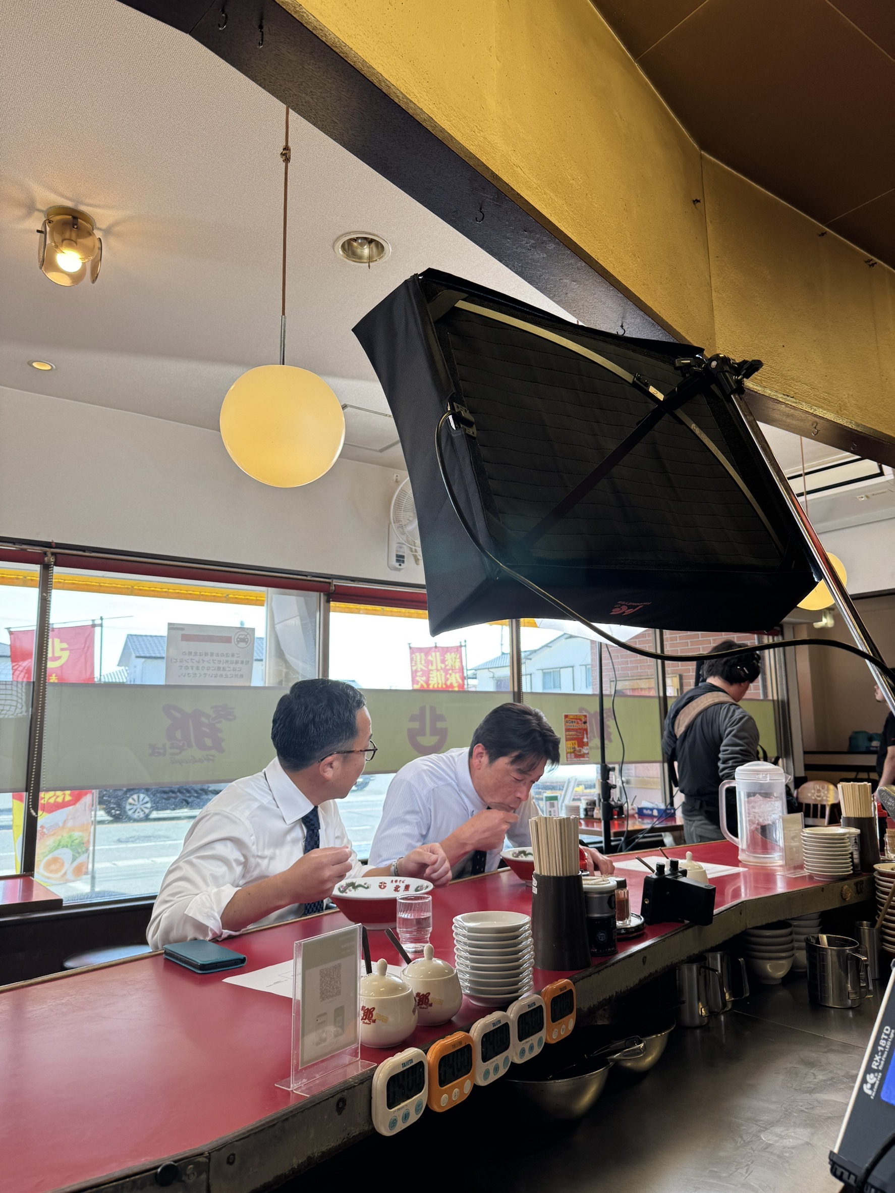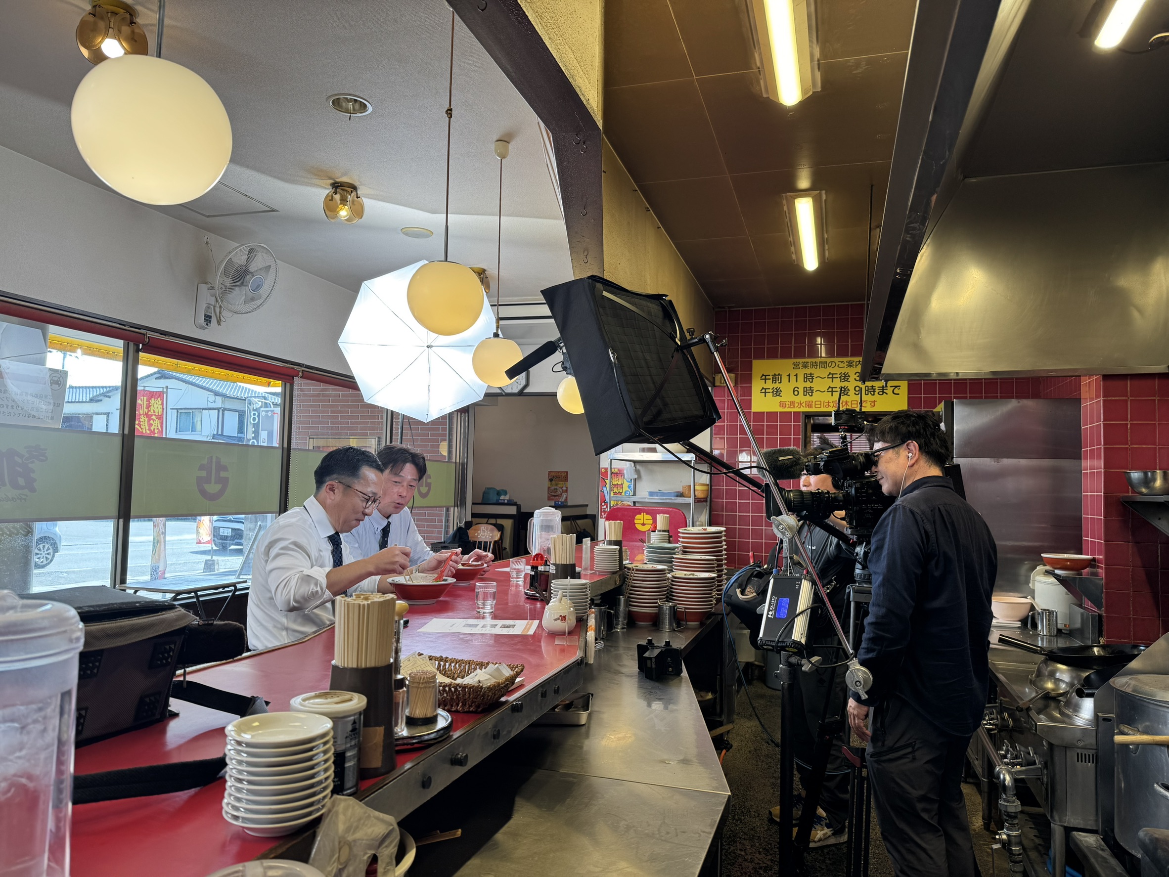 3月17日(火)支那そば北熊本店様に撮影場所のご協力をいただき、当社のテレビコマーシャル撮影がおこなわれました。