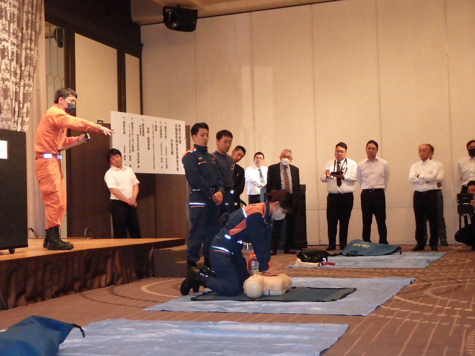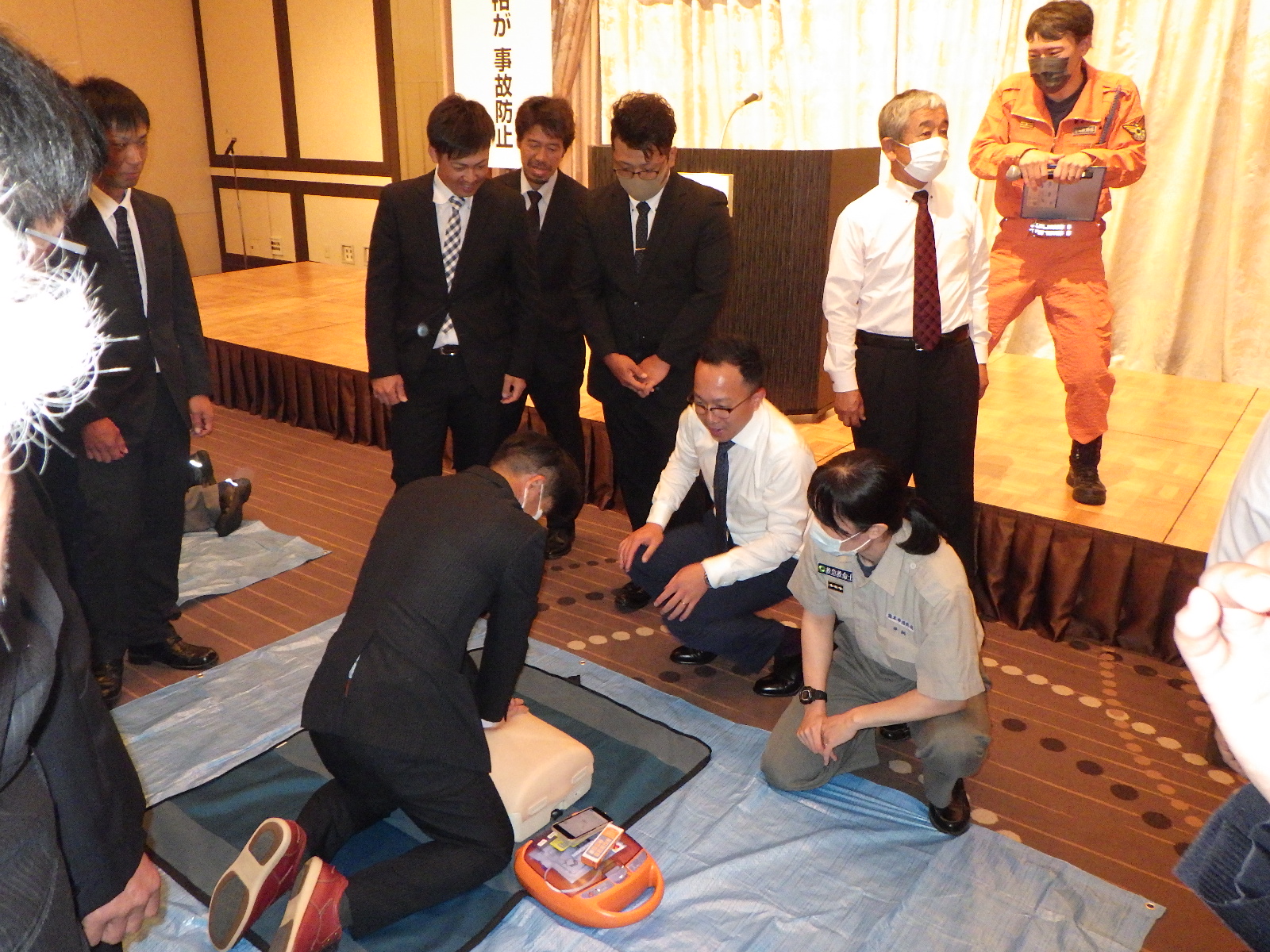 また、今回の安全大会は熊本市消防局西消防署より消防隊員の方を招き、救命講習を受けました。