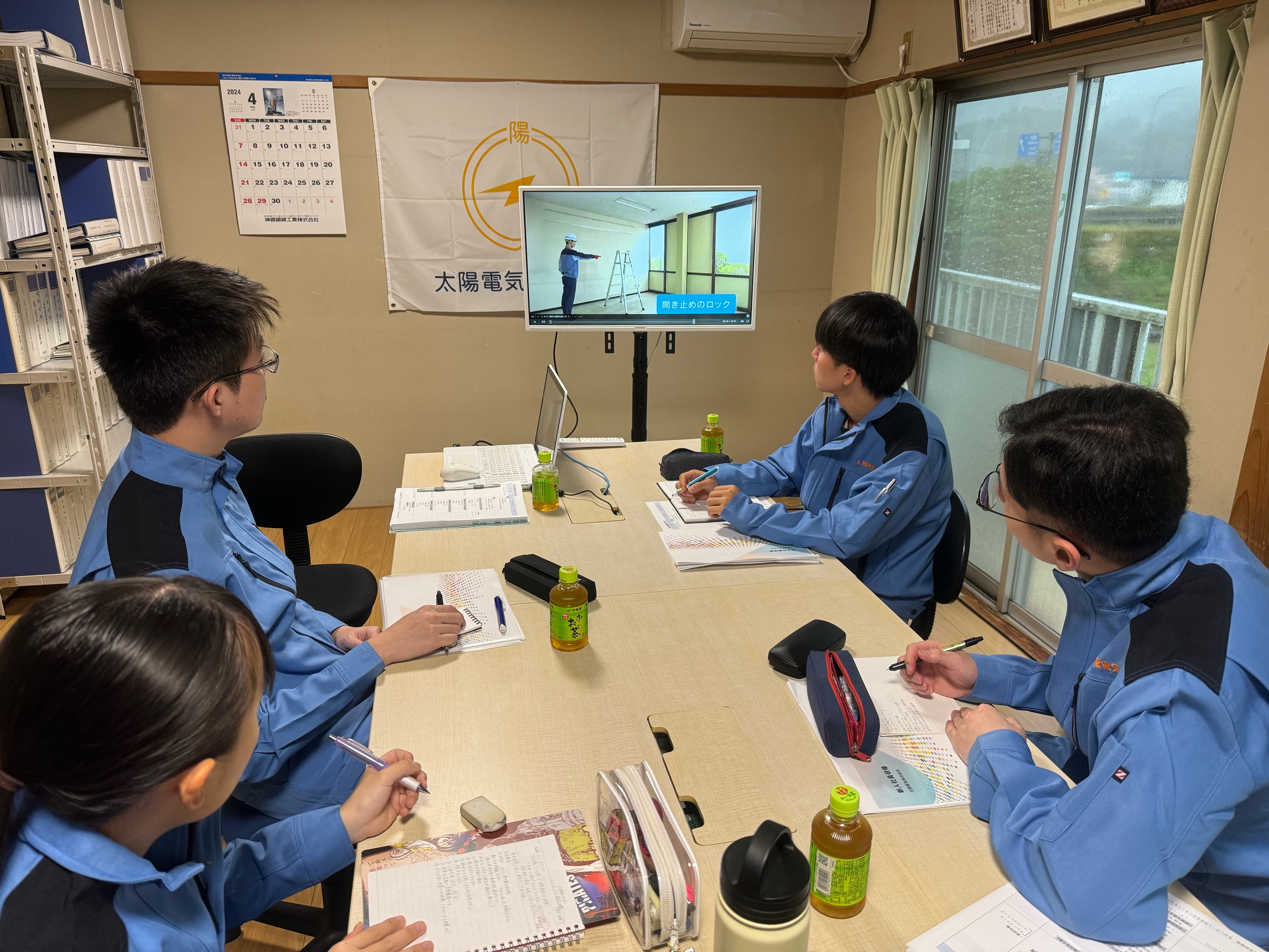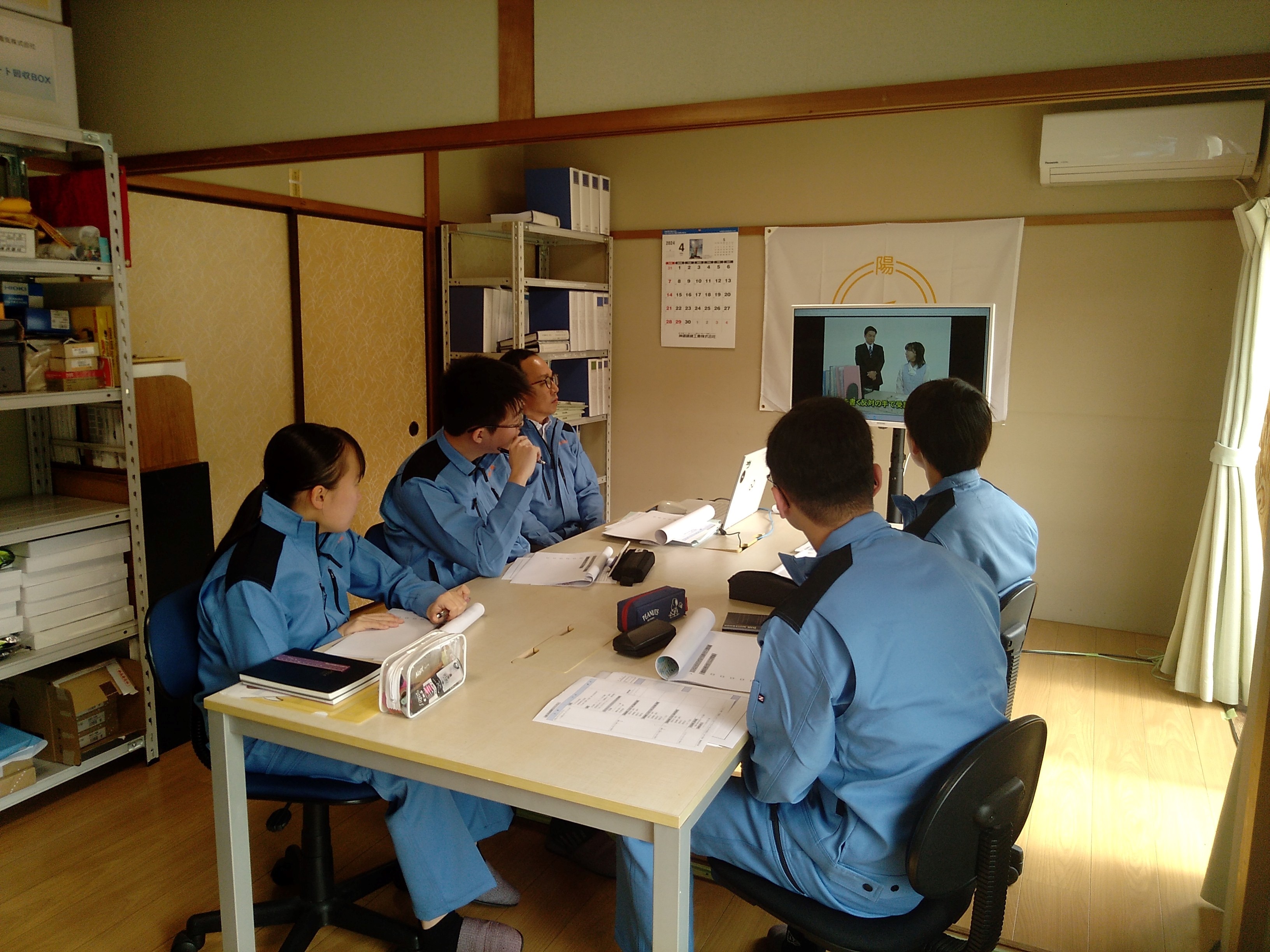 (DVDを使用して、座学研修を行いました。)